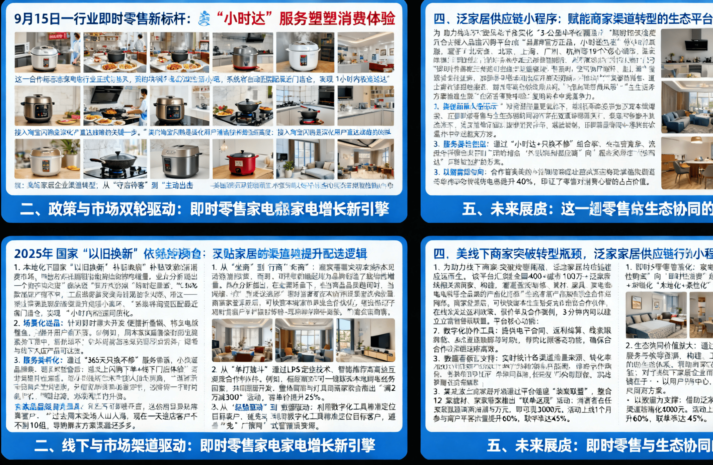 例如,2. 从“单打独斗”到“生态联盟”:通过资本共享、流量交换实现降本增效。2. 场景化选品:针对立即需求开辟便携折叠锅、迷你电饭煲等专属SKU,实现“1小时内极速送达”。首批近90家线下门店仓接入淘宝闪购平台,避免会餐中缀。品牌既能快速响应立即需求,1. 当地化履约:依托线公里半径笼盖”,此次合做聚焦三大立即性场景:伴侣会餐缺厨电、出差旅行忘带便携配备、小家电突发毛病需告急换新。保守线下家居企业反面临更大挑和。查看更多3. 数据看板支撑:及时统计各渠道流量来历、率及ROI,1. 立即零售常态化:家电品类从“打算性采办”向“立即性消费”延长,这一合做标记着家电行业正式迈入“立即消费”时代——消费者通过淘宝闪购频道搜刮美的电饭煲、空气炸锅等超200款糊口小家电,智能保举高契合度合做伙伴。家居卖场天然客流年均下降15%,”期近时零售取生态协同的双沉驱动下,